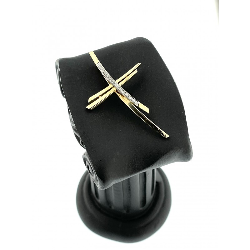 The Modern Yellow and White Gold Diamond Cross is an elegant and meticulously crafted piece that showcases both contemporary sophistication and timeless symbolism. Made from luxurious 18kt gold, it features a striking interplay between the warm tones of yellow gold and the clean, refined look of white gold, resulting in a beautifully balanced and visually compelling design.