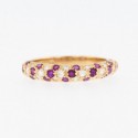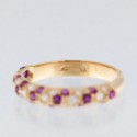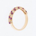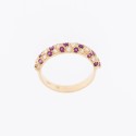 Charming and delicate ring in 18kt yellow gold, set with alternating lines of 0,18 ct diamonds and 0,20 ct rubies. The ideal ring to dress up your finger.